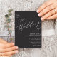 Charcoal Graue elegante Schwarz-Weiß-moderne Script QR Code Alles in einer Minimalistischen Einladungs-Karte Hochzeit. Feiern Sie Ihren besonderen Tag mit dieser eleganten und wunderschönen Einladungskarte für Ihre Hochzeit, um Ihren besondere Anlass zu verschönern. Alle Texte sind so vorbereitet, dass Sie sie einfach und schnell mit Ihren eigenen Details personalisieren können. Wenn Sie weitere Anpassungen oder Matching-Elemente benötigen, schicken Sie bitte eine E-Mail an alldaybreakfastzazzle@gmail.com - wir würden Liebe haben Ihnen zu helfen.