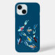 Aquarellfarbener Koi Fisch schön whimsical Design in blau. Originelles, feines Maldesign.