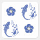 Koi Blossom Crest: Serene Blue Edition Quadratischer Aufkleber