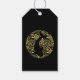 Exotische Koi Fische dekorativ schwarz und gold Geschenketiketten. Schwarzer Koi Fisch auf einem dekorativen gemusterten Hintergrund.