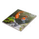 Farbenfroher Karpfenfisch oder Koi Fisch in einem flachen Gartenteich.