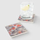 Eleganter SteinUntersetzer mit einer Illustration von zwei orange und von weißen Koi Fischen, schwimmend gegen einen unteren Steinhintergrund. Fertigen Sie besonders an, um jeden möglichen Text zu addieren, den Sie wollen. Macht eine reizende Geschenkidee.