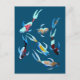 Aquarellfarbener Koi Fisch schön whimsical Design in blau. Originelles, feines Maldesign.
