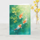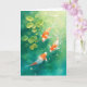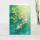 Eine friedliche Szene von Koi-Fischen, die durch klares Wasser gleiten, umgeben von zarten weißen Blume und grünen Lilienblättern. Der lebhafte Orange- und Weißkoi-Fisch bewegt sich anmutig durch das ruhige Wasser und schafft so eine ruhige Atmosphäre. Weiche Bläschen steigen zur Oberfläche, während die sanften Wellen des Wassers die ruhigen und beruhigenden Farben der Szene widerspiegeln und ein Gefühl der Entspannung und Harmonie hervorrufen. Ideal für Naturliebhaber und diejenigen, die zu friedlichen, aquatischen Bildern gezeichnet sind.
