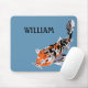 Fügen Sie diesem Mauskissen einen Namen hinzu, um ein personalisiertes Geschenk zu kreieren, das für jeden geeignet ist, der sich am Koi-Teich entspannt. Eine realistische Darstellung eines Koi- oder Zierkarpfen in weißem, orangefarbenem und schwarzem Set vor einem hellblauen Hintergrund mit einem Namen in fett schwarzer Schrift.