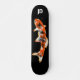 Japanische Karpfen Koi Fisch Illustration digitale Kunstwerke. Symbol für Überfluss, Ausdauer und viel Glück. Wassertier in lebhaften Orange, Schwarz und Weiß. Gotisches Gefühl auf schwarzem Hintergrund. Personalisieren Sie diese durch Hinzufügen von Initialen, um ein individuelleres Skateboard zu erstellen.