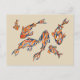 eine dekorative Aquarellgestaltung mit mehreren Koi-Fischen, die auf einer beigen Postkarte herumschwimmen
