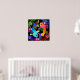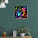 Dieses farbenfrohe Poster zeigt zwei farbige Koi-Fische mit Farbverlauf inmitten farbenfroher Blume.
