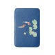 Eine Badematte mit einem idyllischen Zen-Aquarellbild von zwei Koi in einem Koi-Teich mit weißen Wasserlilien und Wasserlilienpolstern (blauer Hintergrund).