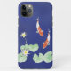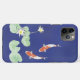 Ein blaues iPhone 11 Pro Max Gehäuse (zäh) mit einem idyllischen Zen Aquarellbild von zwei koi in einem Teich mit weißen Seerosen und Wasserlilien Pads. Auch für andere Gerätetypen erhältlich!