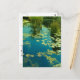 eine hübsche Szene aus einem Koi-Teich mit Lilienblättern und Meeresgrasen in blau-grün und gelb Tönen.