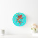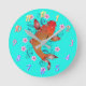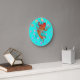 Ein Orangenfisch im orientalischen Stil, umgeben von rosa Blume auf einer türkisfarbenen Uhr. Zahlen sind optional.