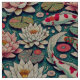 Die lebhaften Farben und die fließenden Bewegungen des Koi bilden einen dynamischen Kontrast zu den friedlichen Blüten und Pads der Lilien, indem sie einen Wandteppich aus Leben, Schönheit und Harmonie verbinden.
