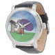 Vintage Männeruhr mit schwarzem Lederarmband