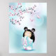 Kokeshi Doll Cherry Blossom Türkis Girls Poster