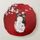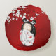 Kokeshi Doll Schwarz-weiße Kirschblüten Rundes Kissen