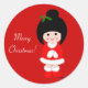 Kokeshi Girl Christmas in Rot Runder Aufkleber