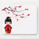 Kokeshi Puppe unter Kirschblüte-Niederlassung Mousepad