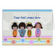 4 niedliche Kokeshi-Puppen auf klassischem japanischem Hintergrund.