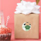 Kokeshi Puppe mit einem grünen Kimono mit Sternen Details.