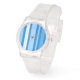 Ein cooles Design mit einem lustigen und koketten Blau-Weiß Streifen Design. Passen Sie Ihre Wünsche an. Ändern Sie den Stil der Uhr nach Wunsch.