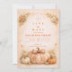Warm, romantisch und mühelos saisonal, dieses Herbsthochzeitsdesign zeigt einen reichen Erbstück-Kürbis, umgeben von weichen Blumen und zarten Herbstblättern. Ein eleganter botanischer Bogen umrahmt die Beschriftung und schafft eine ausgewogene und elegante Komposition mit subtiler rustikaler Note. Der warme neutrale Hintergrund und die verbrannten orangefarbenen Akzente machen es perfekt für eine Outdoor-Herbstfeier, eine Scheunenhochzeit oder ein ernteinspiriertes Ereignis.