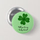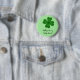Ein niedliches kokettes Kleeblatt auf einem hellgrünen Button auf Knopfdruck für St. Patrick's Day. Der Text lautet "Werden Sie mein Glücksbringer sein?". Der Text kann leicht geändert werden.