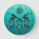 Kokopelli mit Indianersonne und Indianervogel Runde Wanduhr