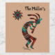 Das ist ein einzigartiges Südwestweinetikett! Es besitzt einen Kokopelli, der die Flute unter der Sonne auf einem Sandsteinhintergrund spielt! Original Art Design von Künstler Kerry Miller.