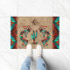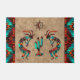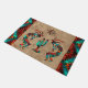 Das ist eine "Eine von einer Art" Südwest Kokopelli Doormat! Es hat zwei Kokopelli, die Flute spielen und um einen Kaktus unter der Sonne auf einem Tan-Hintergrund tanzen...Umgeben von einer Südwestgrenze in Türkis, Orange und Schwarz. Das ist ein originelles Kunstdesign des Künstlers Kerry Miller.