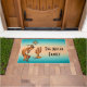 Personalisieren Sie diese einzigartige "Eine von einer Art" Südwest Kokopelli Doormat! Es gibt einen Kupfer im Südwesten Kokopelli, der Flute spielt und um einen Kaktus unter der Sonne tanzt...auf einem türkisfarbenen und orangen Sonnenuntergang! Dies ist ein originelles "One of a Art" Art Design von Künstler Kerry Miller.