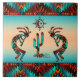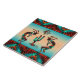 Brighten Sie Ihre Zuhause mit dieser einzigartigen "One of a Kind" Zwei Südwest Kokopelli Keramik Tile! Es gibt einen Zweisüdwesten Kokopelli, der Flute spielt und um einen Kaktus unter der Sonne auf einem türkisfarbenen und orangen Sonnenuntergang tanzt...Umgeben von einer Südwestgrenze in Türkis, Orange und Schwarz! Das ist ein originelles Kunstdesign des Künstlers Kerry Miller.