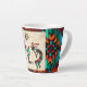 Dies ist eine einzigartige "Eine von einer Art" Südwest Kokopelli Latte Tasse! Es hat zwei südwestliche Kokopelli in Türkis, Orange und Schwarz Playing the Flute und Tanzen rund um einen Kaktus Unter der Sonne! Original Art Design von Künstler Kerry Miller.