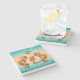 Brighten Sie Ihre Zuhause mit diesem einzigartigen "One of a Kind" Southwest Kokopelli Untersetzer auf! Zwei Kupfer-Südwest-Kokopelli spielen Flute und tanzen um einen Kaktus unter der Sonne auf einem türkisfarbenen und orangen Sonnenuntergang! Original Art Design von Künstler Kerry Miller.