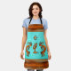 Personalisieren Sie diese einzigartige "Eine von einer Art" Südwestliche Schürze! Zwei Kupfer im Südwesten Kokopelli spielen Flute und tanzen um einen Kaktus unter der Sonne...auf einem türkisfarbenen Hintergrund mit Kupfergrenzen! Dies ist ein Original Art Design von Künstler Kerry Miller.