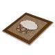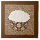 Keramik Kachel - mattierter Kuchen mit geschredderter Kokosnuss, dekoriert, schokoladenbraune und weiße Tapete gemusterter Kuchenwickler auf braunem und cremefarbenem japanischem Hintergrund