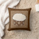 Mattierter Cupcake mit geschredderter Kokosnuss, dekorative, schokoladenbraune und weiße Tapete, gemusterter Kuchenwickler, auf einem braunen und cremefarbenen, japanisch wirbelnden Kopfkissen