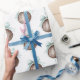 Kokosnuss-Ornamente Hellblaue Schleifen Weihnachte Geschenkpapier