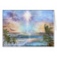 Schöner Pastell farbiger Meerblick mit Palmen, Licht der Wellen-, Springendelphine leuchtendem und sitzendem Meditator. Durch Daniel B. Holeman.