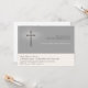 Eine stilvolle christliche Einladung im Holzkohlengrau und weg vom Weiß mit grauem Kruzifix und glühendem Effekt. Fertigen Sie für jedes religiöse Ereignis einschließlich Taufen, Taufen, erste heilige Kommunionen oder Bestätigungen besonders an.