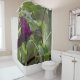 Ein Rubin-throated Kolibri, der auf lila Blumen füttert