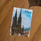 Eine farbenfrohe Retro-Vintage Kölner Postkarte mit dem Kölner Dom in Deutschland. Einzigartiges Souvenir und Geschenkidee für jeden Touristen des europäischen Reiseziels. Machen Sie es sich selbst und kaufen Sie jetzt.