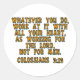 Was auch immer du tust, arbeite mit deinem ganzen Herzen daran, als für den Herrn zu arbeiten, nicht für die Menschen. Kolossisten 3:23