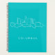 Dieses Design zeigt eine handgezeichnete Abbildung des Columbus, Ohio City Skyline auf einem blauen Hintergrund.