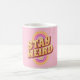 Abstraktes Retrostil-Grunge "Bleibe seltsames" Textdesign mit Rosa, Beige, Orange und lila Regenbogendekoration