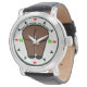 Hier! Hier! Diese lustige Armbanduhr fotografiert ein menschliches Entgleisen, um die Aufnahme in einem Bogen darüber zu illustrieren, und erinnert uns daran "Nicht hinter uns zurückkommen - Auf TIme Bleibe". Hellroter Kuss markiert 12, 3, 6 & 9 Uhr. Schwarze Pfeilspitzen kennzeichnen die restlichen Stunden. BONUS 2 benutzerdefinierte Textfelder für Ihre Initialen.