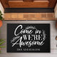 Komm rein, wir sind Phantastisch Black Funny Family Doormat. Diese rustikale Türmatte verfügt über ein modernes Skript mit rustikalen Laurel Olivenzweig Akzente. Personalisieren Sie dieses lustige Design mit Ihrem eigenen Familiennamen. Macht das perfekte Geschenk für die Hauswärmung.