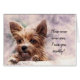 Foto eines traurigen Terrier Hundes, der darauf hinweist, dass jemand vermisst ist