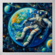 Ein einsamer Astronaut schwimmt im Weltraum vor dem lebendigen Hintergrund der Erde und zahlreicher Himmelskörper. Lebhafte Farben und komplexe Details erfassen die Weite und das Geheimnis des Universums.