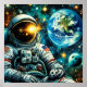 Ein einsamer Astronaut schwimmt im Weltraum vor dem lebendigen Hintergrund der Erde und zahlreicher Himmelskörper. Lebhafte Farben und komplexe Details erfassen die Weite und das Geheimnis des Universums.